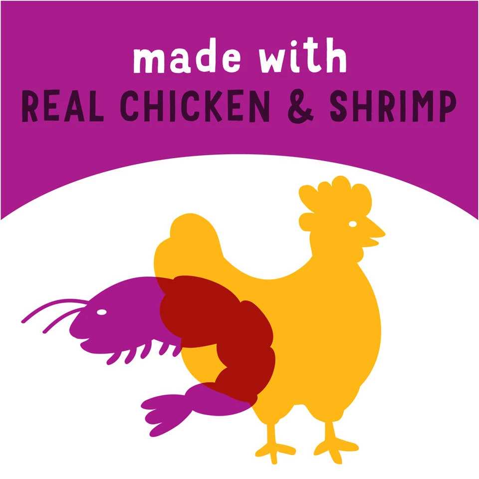 Chicken Broth, Chicken, Shrimp, Tapioca Starch, Powdered Cellulose, Xanthan Gum, Guar Gum, Thiamine Mononitrate (Vitamin B-1).