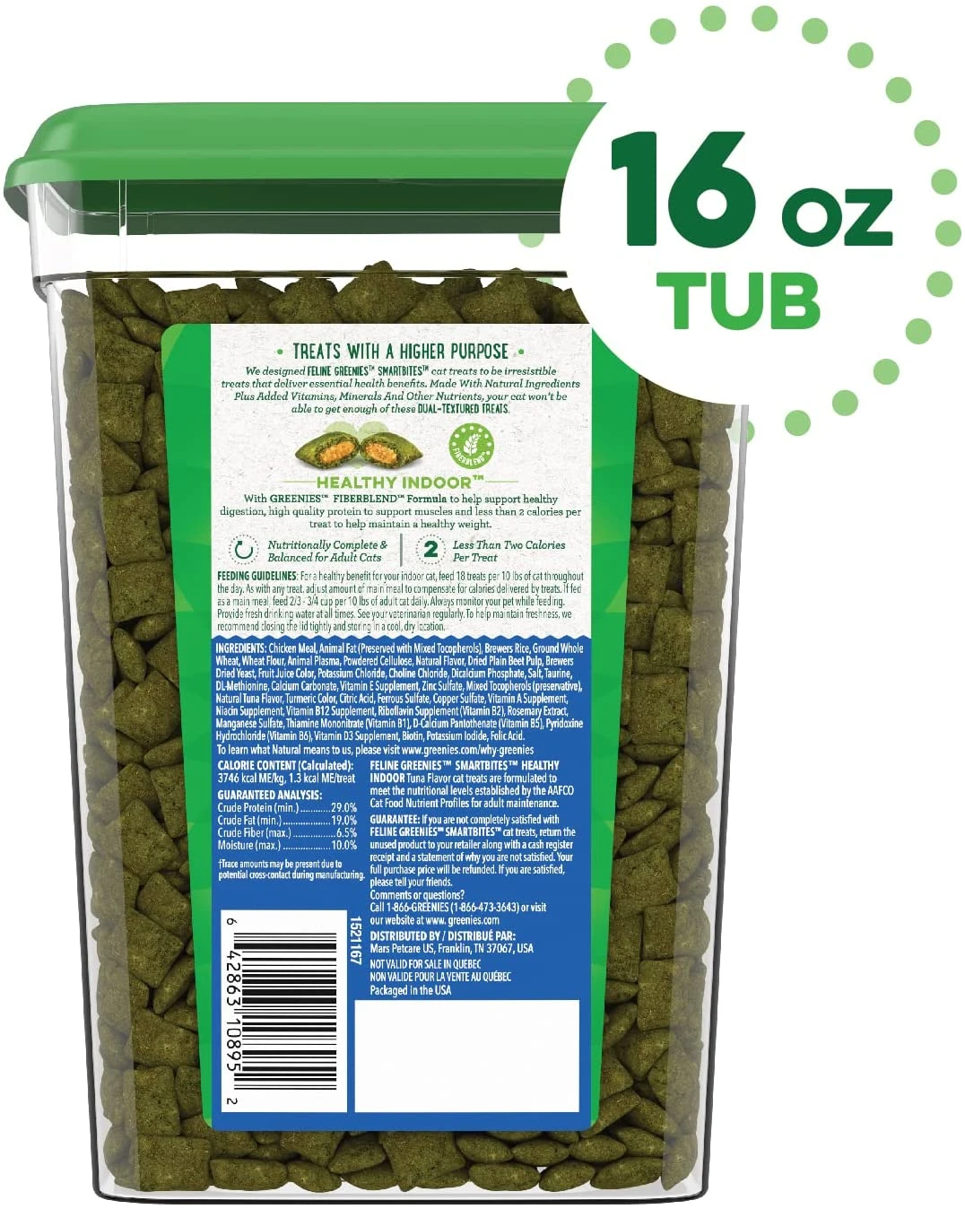 New Name: Greenies Feline SmartBites Indoor Healthy Tuna Dental Cat Treats – 16 oz