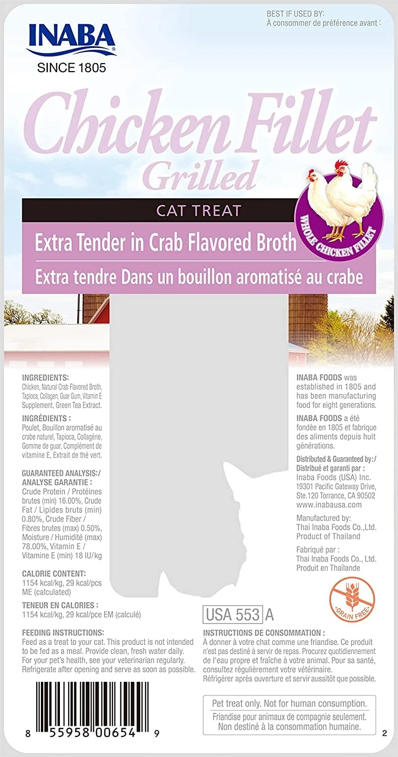 INGREDIENTS: Chicken Natural Crab Flavored Broth Tapioca Collagen Guar Gum Vitamin E Supplement Green Tea Extract.
