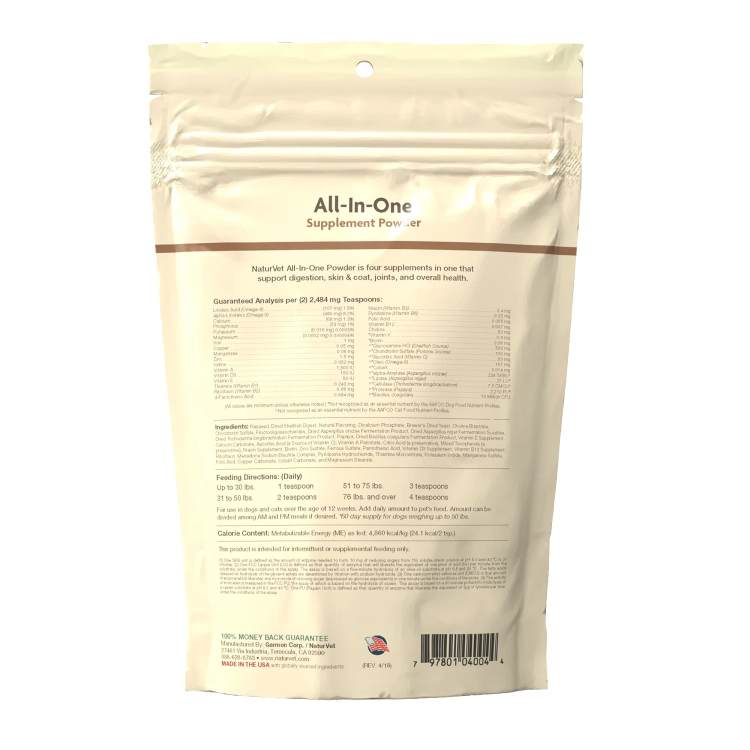 Naturvet All-in-One Powder Supplement (60 Day Supply) Cat and Dog Vitamins – 13 oz Bag