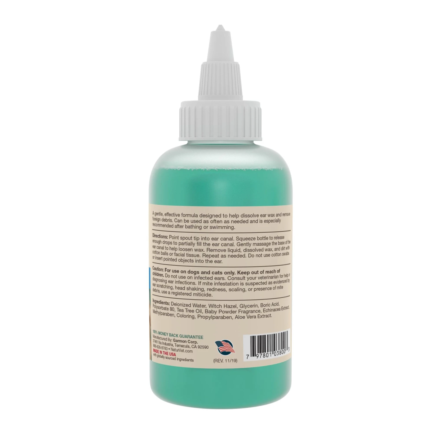Naturvet Dog and Cat Ear Wash with Tea Tree Oil (Aloe & Baby Powder) – 4 oz Bottle