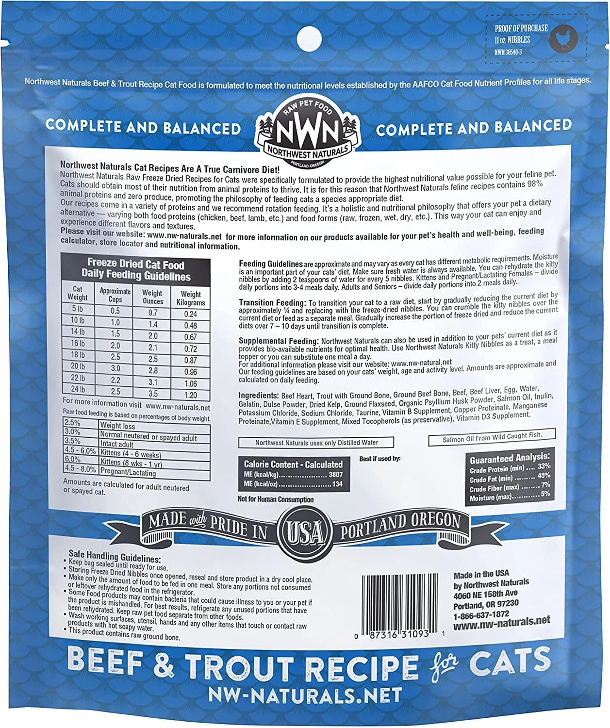 Northwest Naturals Beef & Trout Cat Recipe Freeze-Dried Cat Treats – 11 Oz Bag