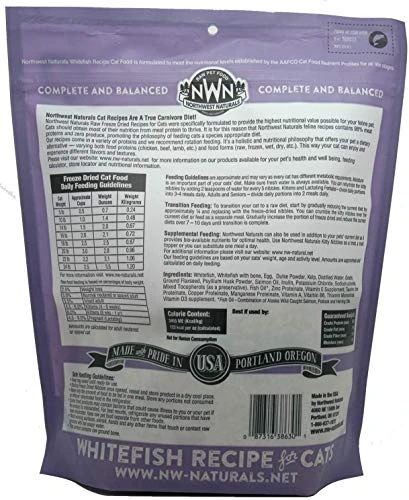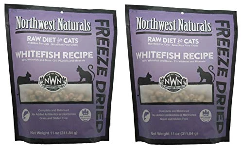 2 11-ounce bags Freeze-Dried Raw Whitefish cat foodRaw cat food formulated to provide the highest possible nutritional value. A complete and balance freeze-dried food for cats made with 98% whitefish, organs and boneThis grain- and gluten-free cat food is made from eco-friendly whitefish raised without added antibiotics or hormones. Made in the USA