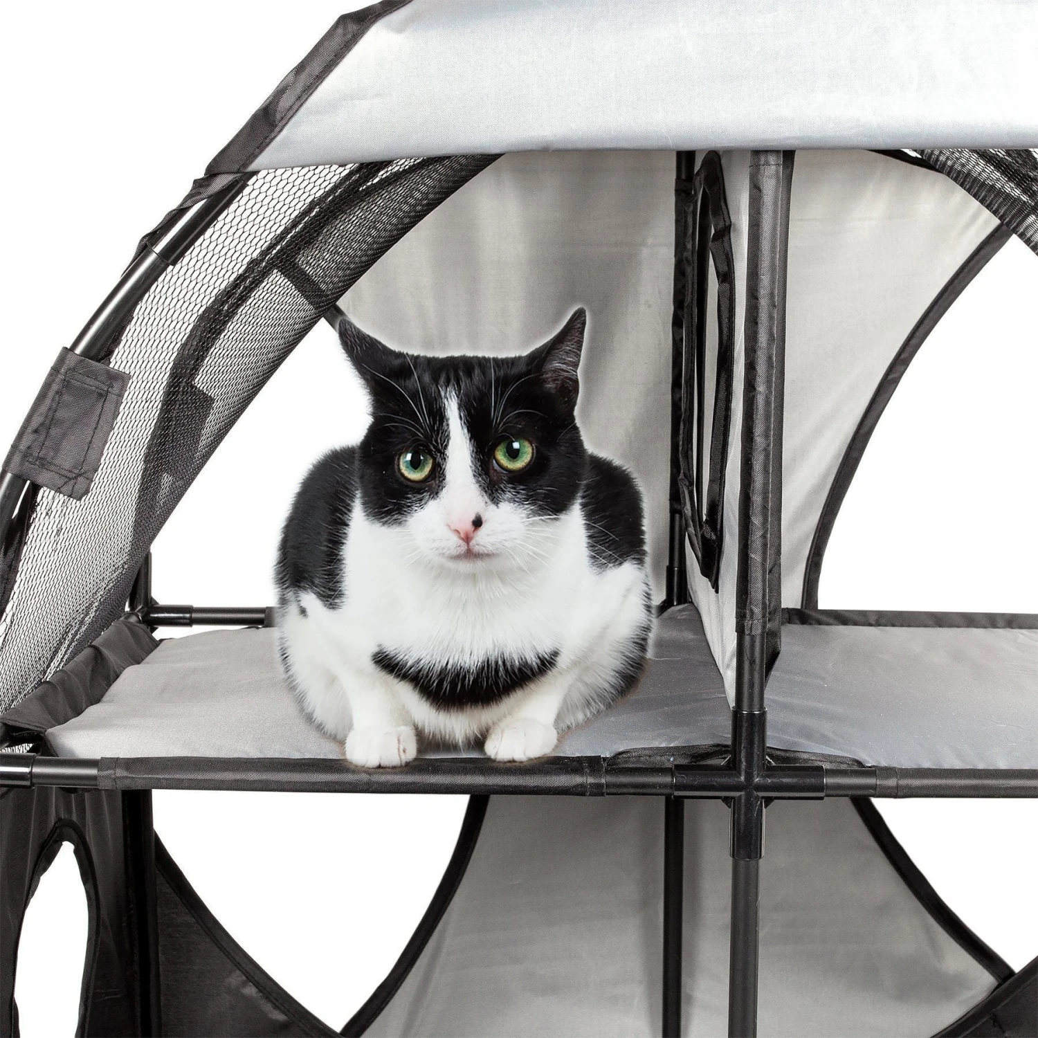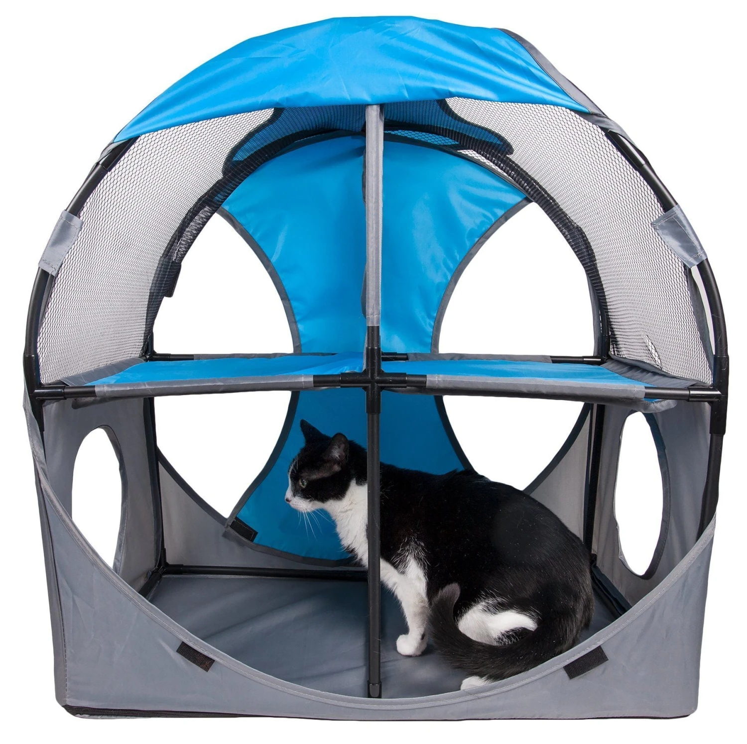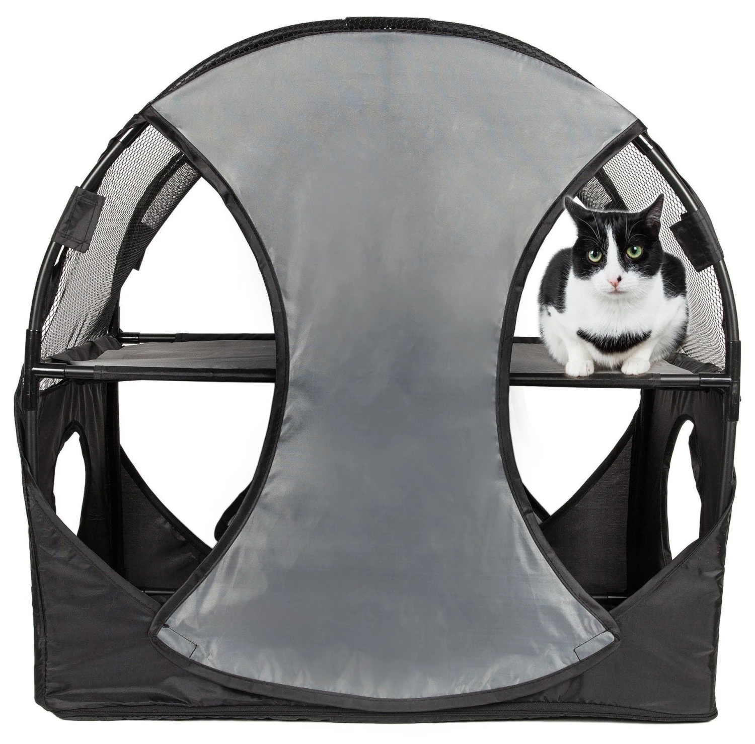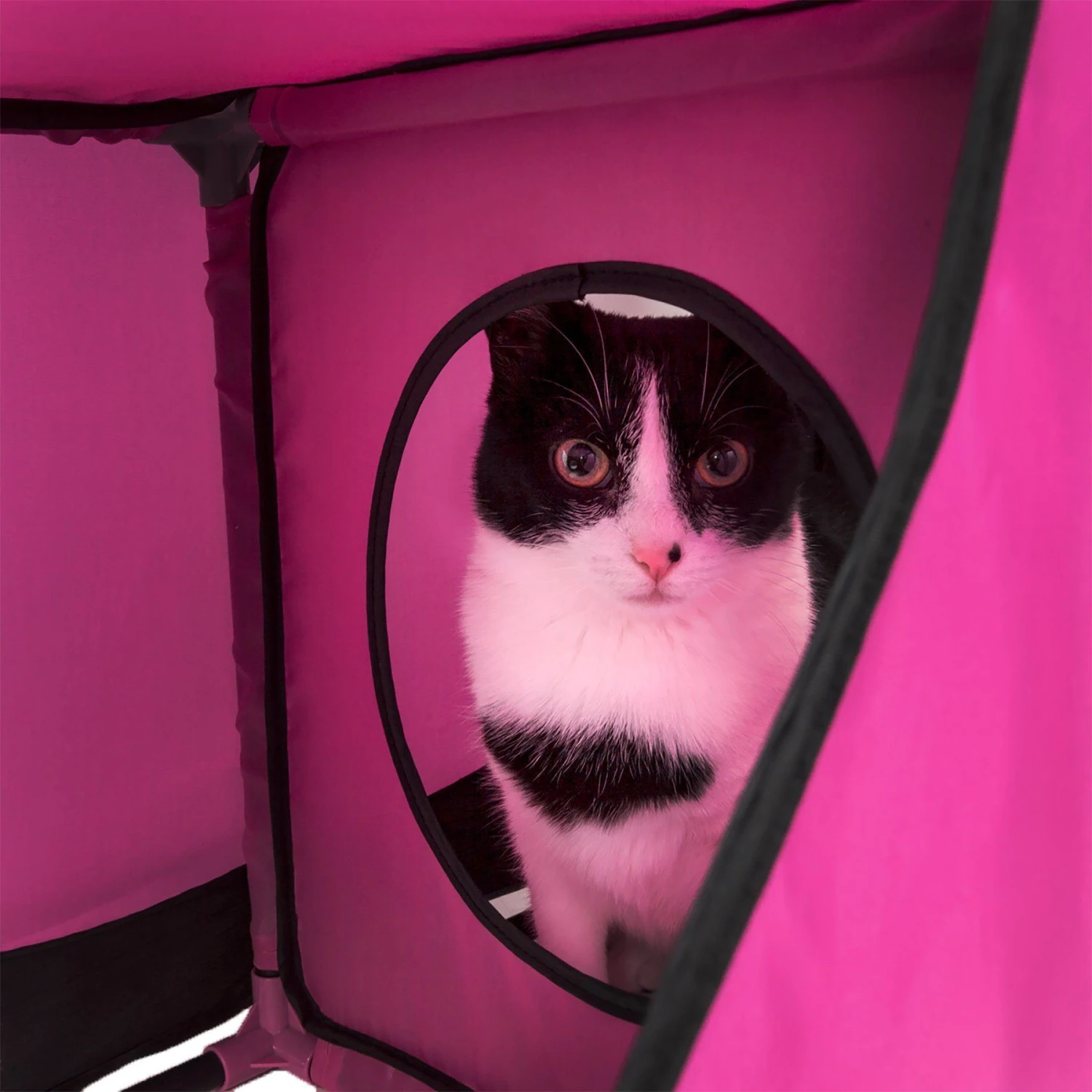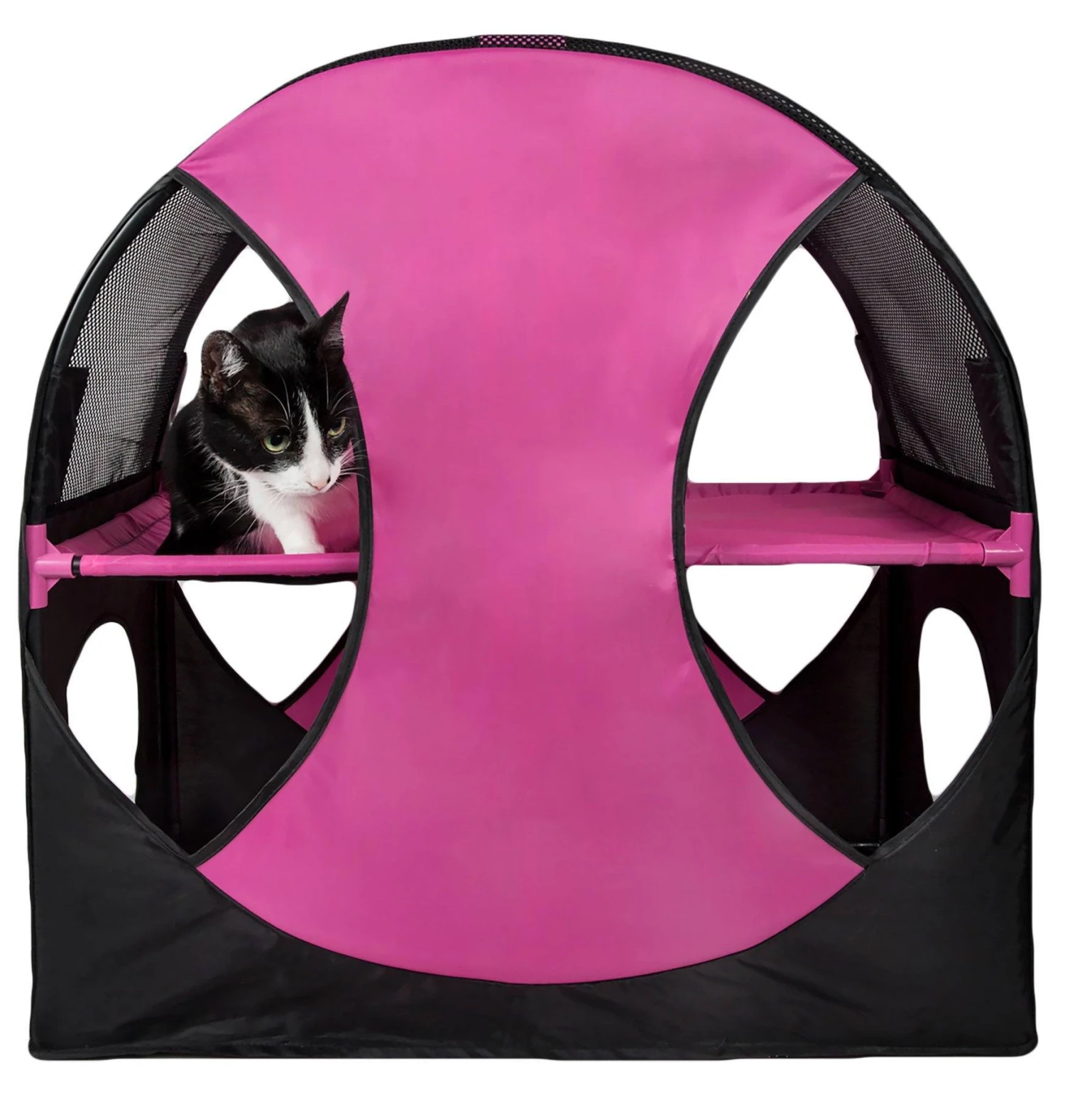 The Pet Life Kitty-Play Obstacle Travel Collapsible Soft Folding Pet Cat House is constructed with durable PU coated polyester and mesh netting all around for breathability and framed with lightweight poles for added durability. The Kitty-Play Cat House features pass-through entrances at the bottom with dual mezzanine holes for climb through passage. Easy to install and setup. Great for interactive fun and brain activity development. Heavy enough to hold over 120 lbs. of weight, and light and small enough to travel and setup. Easier for storage and a simpler alternative to those bulkier conventional heavier cat houses. Features multiple tunnels located at the interior making it great for multiple cats. Available in multiple colors.