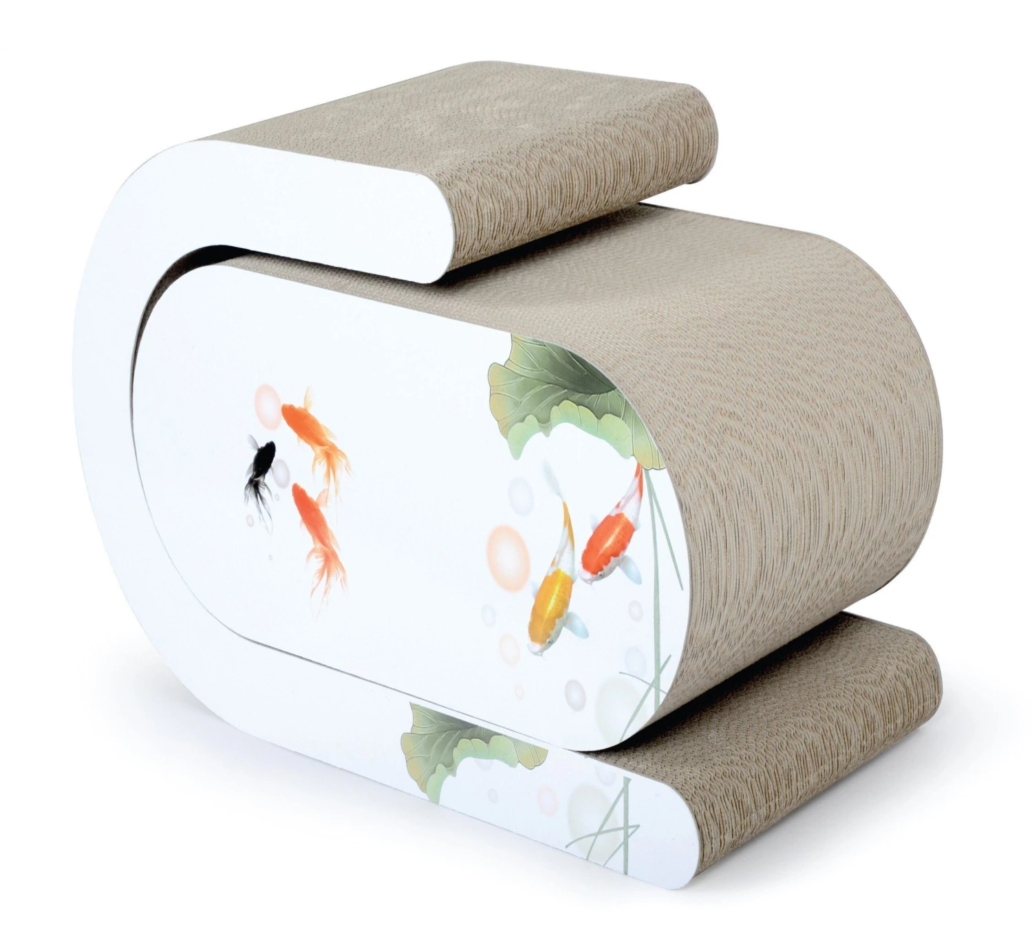 The Pet Life Shellack Ultra Premium 2-in-1 pill curved modern contoured cat scratcher lounger is composed of ultra-premium and durable recycled cardboard featuring Non-Toxic glue made of corn starch. Features a semi-curved design with a separate oval curved modern structure. The eject able interior piece doubles as a separate cat scratcher. Features up-to three separate lounging areas which makes it easy for scratching or lounging on while looking great as a home furniture piece. Constructed with superior cardboard and built-to-last longer than the conventional cat scratcher. Features a nice size large enough for multiple cats. Comes with an organic catnip device. Great for exercising and keeping paws healthy.