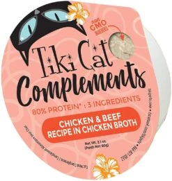 Tiki Cat Complements Chicken & Beef Cat Food Toppers And Crunchers – 2.1 Oz Cups – Case Of 8