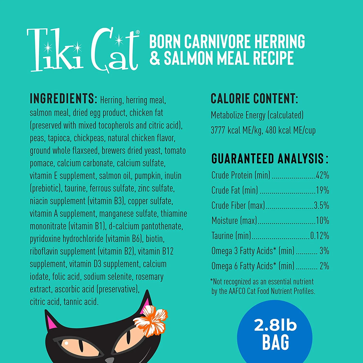Tiki Cat Born Carnivore Non-GMO Herring & Salmon non Kibble Dry Cat Food – 2.8 lb Bag