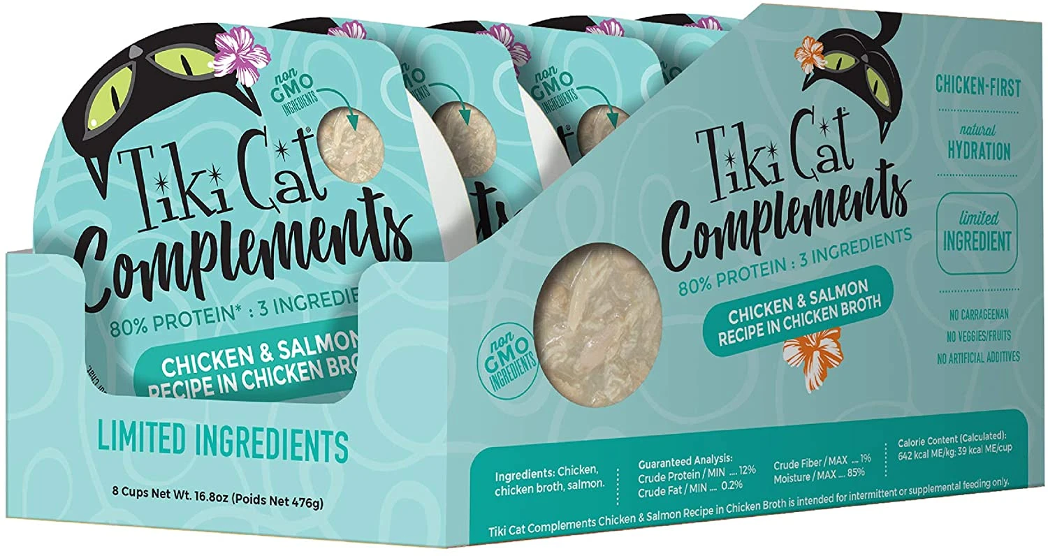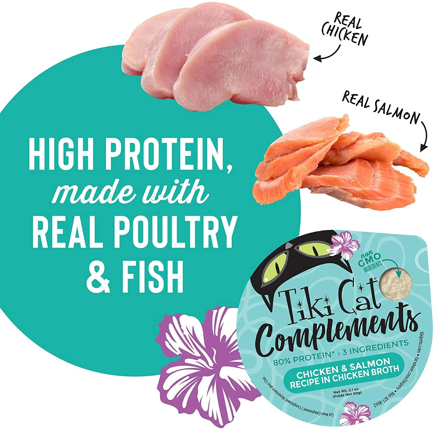 Tiki Cat Complements Chicken & Salmon Cat Food Toppers and Crunchers – 2.1 oz Cups – Case of 8