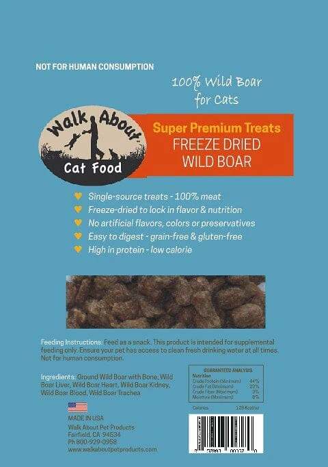 Single source, high protein treat that will feed your cats wild side. Wild Boar is considered a “cooling” meat which helps with inflammation. Wild Boar is higher in protein than chicken and beef and is also a notable source of Thiamine, B6, Niacin, Zinc and Selenium. All of which are essential for dog’s energy regulation, carbohydrate metabolism, enzyme function, glucose generation, RBC and nervous system function.
